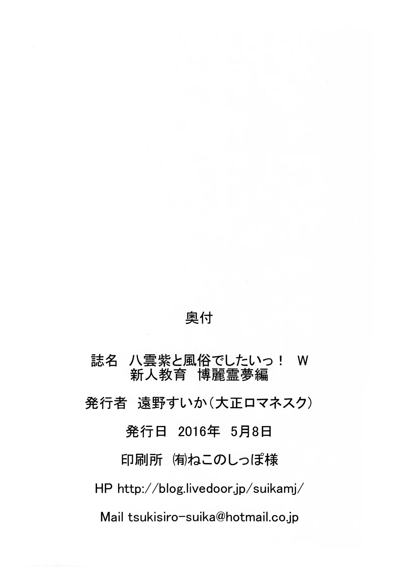 (Reitaisai 13) [Taishou Romanesque (Toono Suika)] Yakumo Yukari to Fuuzoku de Shitai! W Shinjin Kyouiku Hakurei Reimu Hen (Touhou Project)